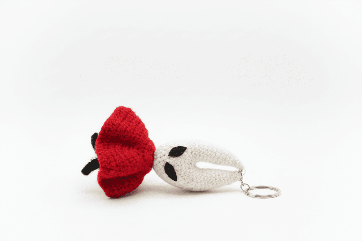 Llavero inspirado en Hornet, el icónico personaje del videojuego Hollow Knight, tejido a mano en crochet con todo detalle. Ideal para fans del juego, este accesorio combina el encanto artesanal con la esencia del mundo de Hallownest. Úsalo en tus llaves, mochila o bolso y lleva siempre contigo un pedacito de tu universo gamer favorito. Perfecto para coleccionistas o como regalo original para amantes de los videojuegos indie.