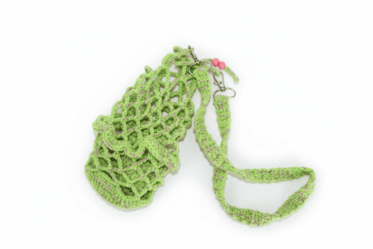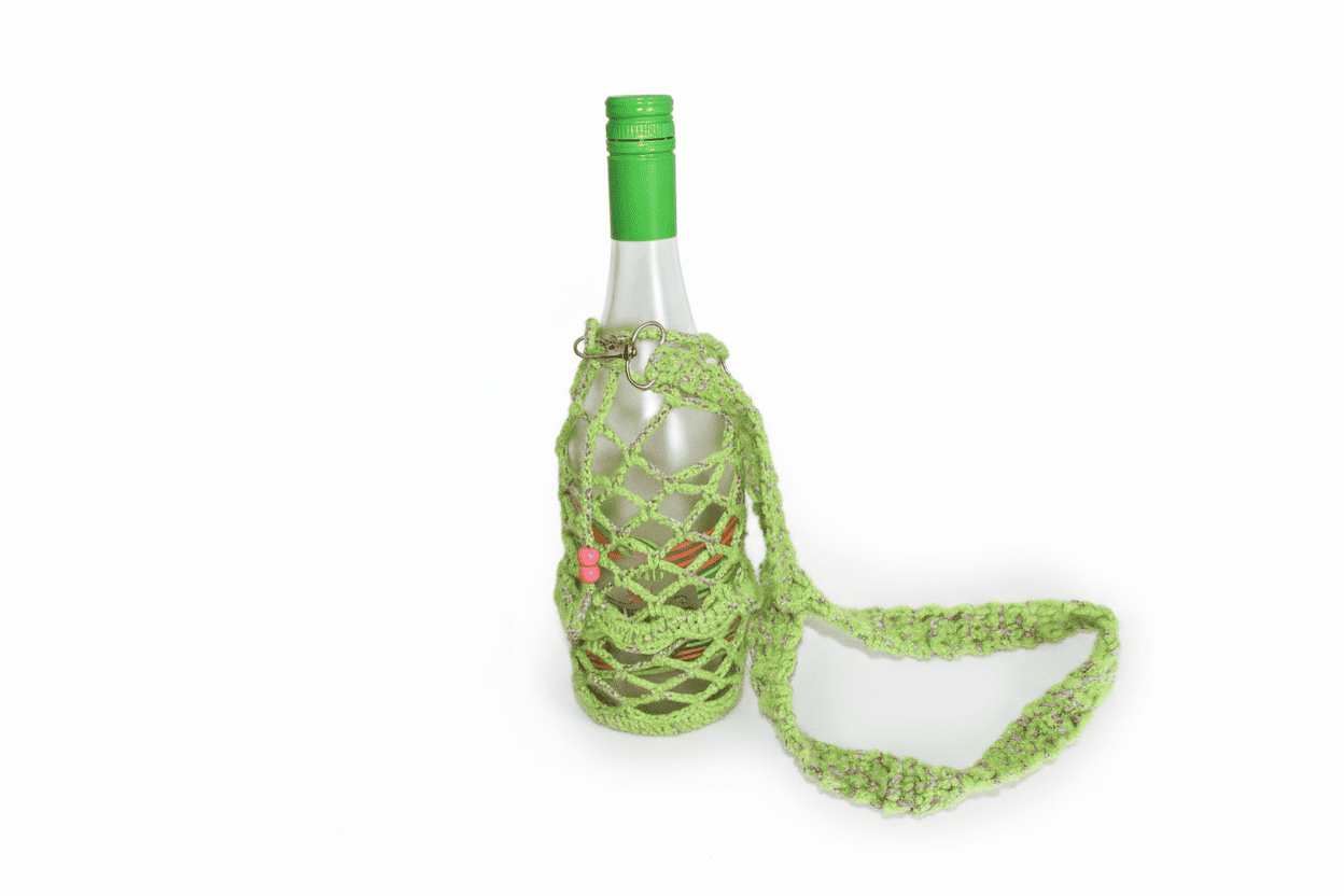 Práctico porta botellas hecho a mano en crochet, resistente y con un diseño elástico que se adapta a diferentes tamaños de botella. Incluye una correa cómoda y desmontable para llevar tu bebida colgada al hombro o cruzada, convirtiéndolo en el accesorio perfecto para paseos, excursiones o festivales. Un detalle artesanal que une funcionalidad y estilo en cada uso.